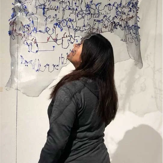 This piece is an expression of my conscience. When people get inside the head, they would see some Persian poetries has sewn inside the mesh but outside of the head the English poetries are apparent.
